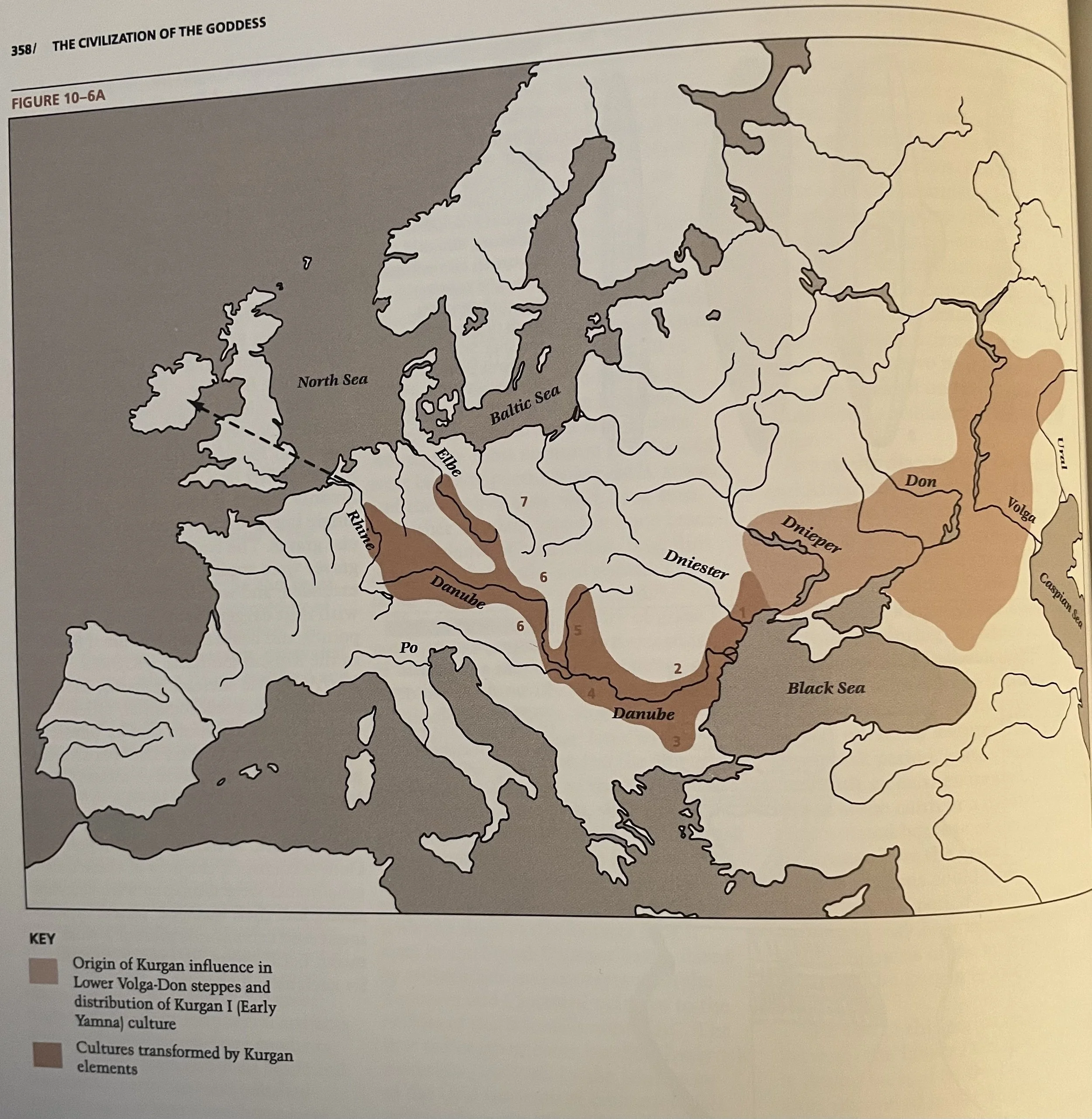 In Old Europe the physical and cultural disruption of the Neolithic societies…also seems to begin in the fifth century B.C.E. with three repeated incursions by what Marija Gimbutas called the Kurgans.