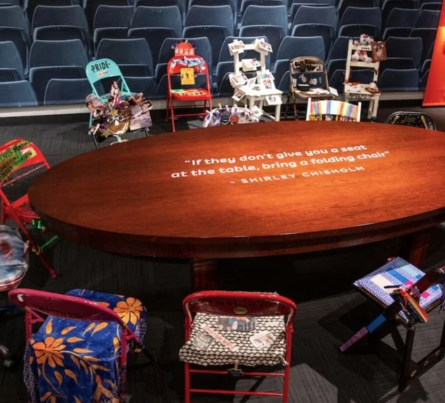 The exhibit evolved to include twenty artist-created chairs that represented the stories of both historic and contemporary trailblazers who found their own seats at the table.